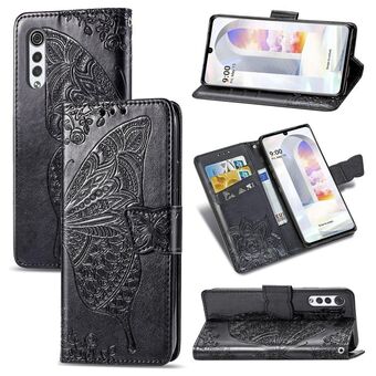 Butterfly Love Flowers Embossed Horizontal Flip Leather Case with Holder & Card Slots & Wallet & Lanyard For LG Velvet 2 Pro(Black)