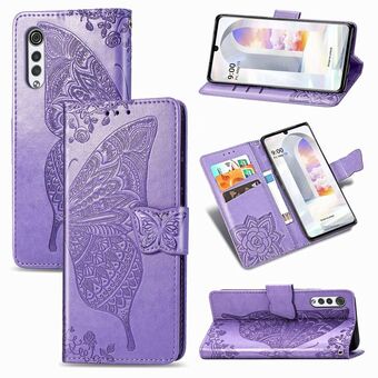 Butterfly Love Flowers Embossed Horizontal Flip Leather Case with Holder & Card Slots & Wallet & Lanyard For LG Velvet 2 Pro(Light Purple)