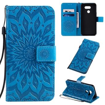 For LG K40S Pressed Printing Sunflower Pattern Horizontal Flip PU Leather Case with Holder & Card Slots & Wallet & Lanyard(Blue)