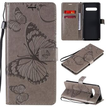 For LG V60 3D Butterflies Embossing Pattern Horizontal Flip Leather Case with Holder & Card Slot & Wallet(Grey)