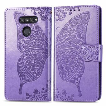 For LG K50S Butterfly Love Flower Embossed Horizontal Flip Leather Case with Bracket / Card Slot / Wallet / Lanyard(Light Purple)