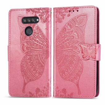 For LG K50S Butterfly Love Flower Embossed Horizontal Flip Leather Case with Bracket / Card Slot / Wallet / Lanyard(Pink)