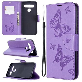 For LG K61 Two Butterflies Embossing Pattern Horizontal Flip Leather Case with Holder & Card Slot & Wallet & Lanyard(Purple)