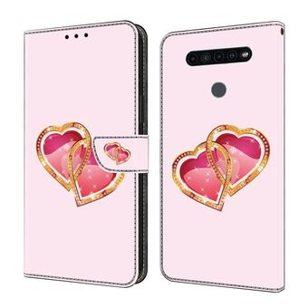 For LG K51 Crystal Painted Leather Phone case(Love Peach)