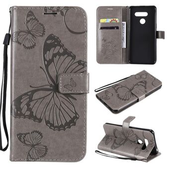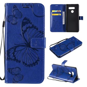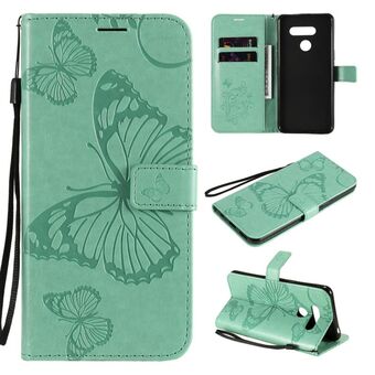 Θήκη δέρματος οριζόντιας αναδίπλωσης για LG K50S με ανάγλυφο σχέδιο 3D πεταλούδας, με βάση, θήκη καρτών, πορτοφόλι και κορδόνι (Πράσινο)