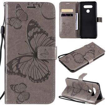 For LG K61 3D Butterfly Embossed Pattern Horizontal Flip Leather Case with Holder & Card Slot & Wallet & Lanyard(Grey)