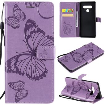For LG Stylo 6 3D Butterfly Embossed Pattern Horizontal Flip Leather Case with Holder & Card Slot & Wallet & Lanyard(Purple)