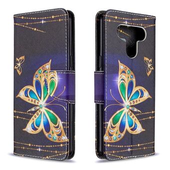 For LG K51 Colored Drawing Pattern Horizontal Flip Leather Case with Holder & Card Slots & Wallet(Gold Butterfly)