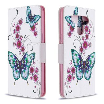 For LG K51 Colored Drawing Pattern Horizontal Flip Leather Case with Holder & Card Slots & Wallet(Peach Blossom and Butterfly)
