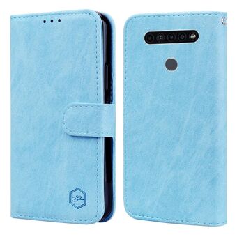 Θήκη κινητού τηλεφώνου για LG K51, με υφή δέρματος λαδιού, PU + TPU (Ανοιχτό Μπλε)