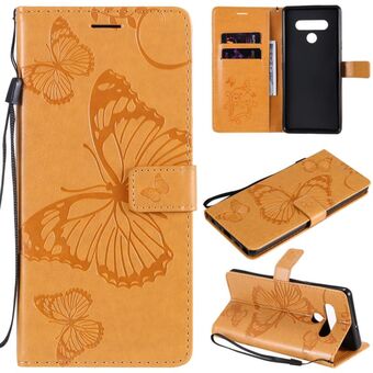 For LG Stylo 6 3D Butterfly Embossed Pattern Horizontal Flip Leather Case with Holder & Card Slot & Wallet & Lanyard(Yellow)