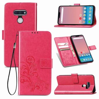 For LG Style3 L-41A Four-leaf Clasp Embossed Buckle Mobile Phone Protection Leather Case with Lanyard & Card Slot & Wallet & Bracket Function(Magenta)