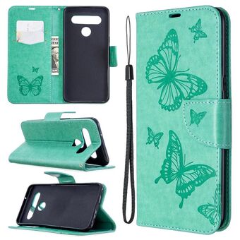 For LG K61 Two Butterflies Embossing Pattern Horizontal Flip Leather Case with Holder & Card Slot & Wallet & Lanyard(Green)
