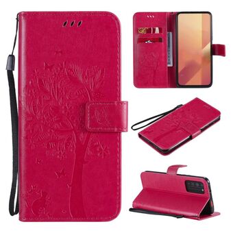 For Huawei Honor X10 5G Tree & Cat Embossed Pattern Horizontal Flip Leather Case with Holder & Card Slots & Wallet & Lanyard(Rose Red)