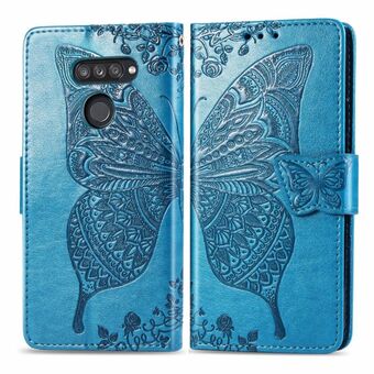 For LG K50S Butterfly Love Flower Embossed Horizontal Flip Leather Case with Bracket / Card Slot / Wallet / Lanyard(Blue)