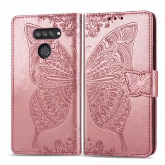 For LG K50S Butterfly Love Flower Embossed Horizontal Flip Leather Case with Bracket / Card Slot / Wallet / Lanyard(Rose gold)