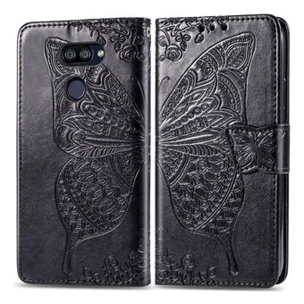 For LG K40S Butterfly Love Flower Embossed Horizontal Flip Leather Case with Bracket / Card Slot / Wallet / Lanyard(Black)