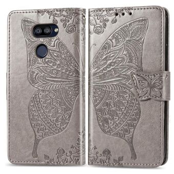 For LG K40S Butterfly Love Flower Embossed Horizontal Flip Leather Case with Bracket / Card Slot / Wallet / Lanyard(Gray)