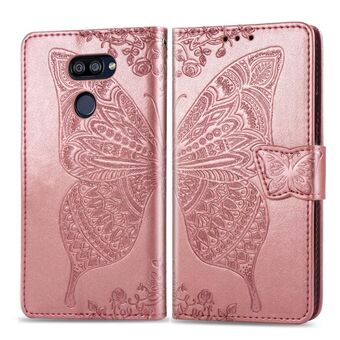 For LG K40S Butterfly Love Flower Embossed Horizontal Flip Leather Case with Bracket / Card Slot / Wallet / Lanyard(Rose Gold)