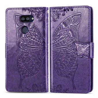 For LG K40S Butterfly Love Flower Embossed Horizontal Flip Leather Case with Bracket / Card Slot / Wallet / Lanyard(Dark Purple)