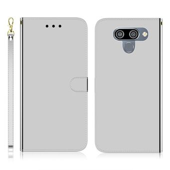 Για LG Q60 Imitated Mirror Surface Horizontal Flip Leather Case με θήκη για κάρτες & υποδοχές & πορτοφόλι & κορδόνι (Ασημί)