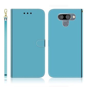 Για LG Q60 Imitated Mirror Surface Horizontal Flip Leather Case με θήκη για κάρτες & υποδοχές & πορτοφόλι & κορδόνι (μπλε)