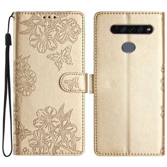 For LG K61 Cherry Blossom Butterfly Skin Feel Embossed PU Phone Case(Gold)