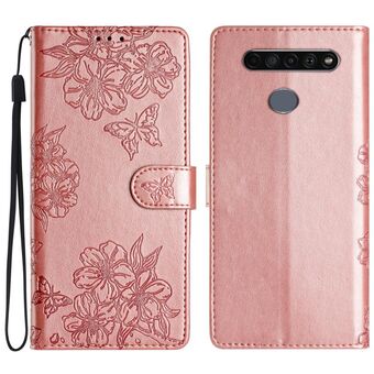 For LG K51S Cherry Blossom Butterfly Skin Feel Embossed PU Phone Case(Rose Gold)