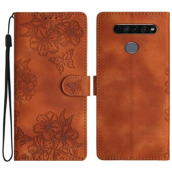 For LG K61 Cherry Blossom Butterfly Skin Feel Embossed PU Phone Case(Brown)