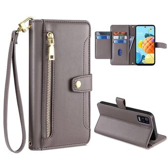 For LG K52 Sheep Texture Cross-body Zipper Wallet Leather Phone Case(Grey)