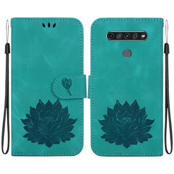 For LG K61 Lotus Embossed Leather Phone Case(Green)
