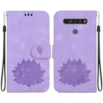 For LG K61 Lotus Embossed Leather Phone Case(Purple)