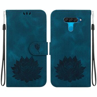 For LG K50 / Q60 Lotus Embossed Leather Phone Case(Dark Blue)