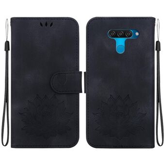For LG K50 / Q60 Lotus Embossed Leather Phone Case(Black)