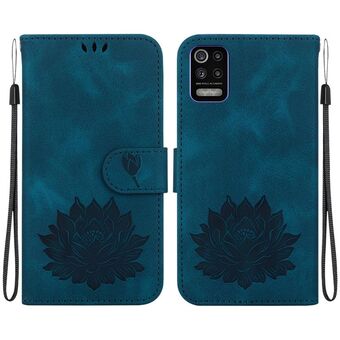 For LG K52 / K62 / Q52 Lotus Embossed Leather Phone Case(Dark Blue)
