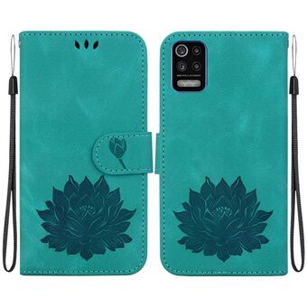 For LG K52 / K62 / Q52 Lotus Embossed Leather Phone Case(Green)