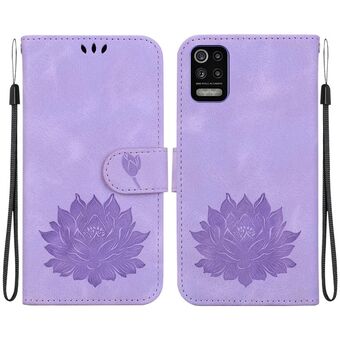 For LG K52 / K62 / Q52 Lotus Embossed Leather Phone Case(Purple)