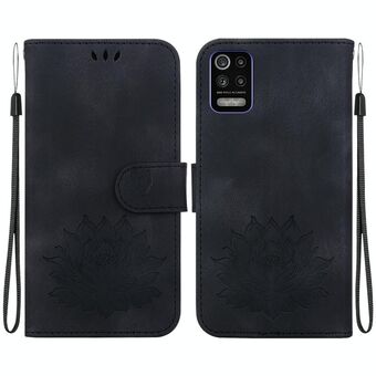 For LG K52 / K62 / Q52 Lotus Embossed Leather Phone Case(Black)