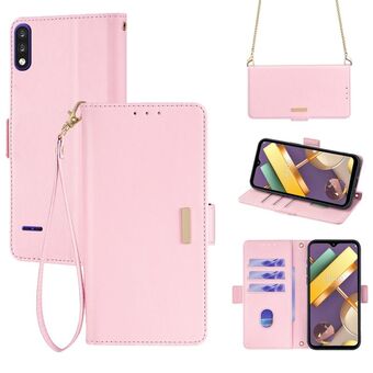 Για LG K22 Crossbody αλυσίδα δερμάτινη θήκη τηλεφώνου (ροζ)