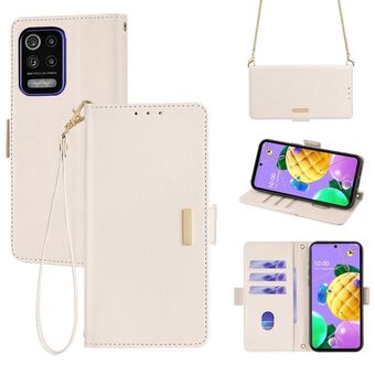 Για LG K52 Crossbody Αλυσίδα δερμάτινη θήκη τηλεφώνου (Λευκό)