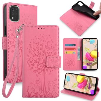 Για LG K42 δέντρο & ελάφι ανάγλυφη δερμάτινη θήκη τηλεφώνου (ροζ)