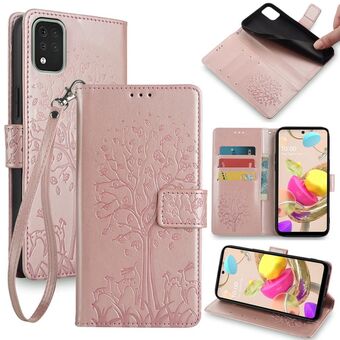 Για το LG K42 Tree & Deer ανάγλυφη δερμάτινη θήκη τηλεφώνου (Rose Gold)