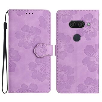 Για LG K50 λουλούδι ανάγλυφο μοτίβο δερμάτινη θήκη τηλεφώνου (μωβ)