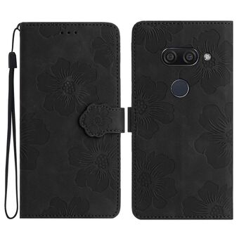 Για LG K50 λουλούδι ανάγλυφο μοτίβο δερμάτινη θήκη τηλεφώνου (μαύρο)