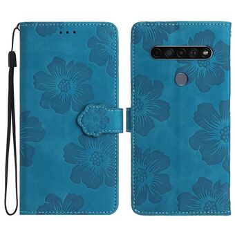Για LG K61 λουλούδι ανάγλυφο μοτίβο δερμάτινη θήκη τηλεφώνου (μπλε)