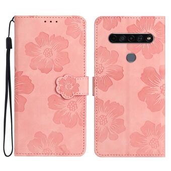 Για LG K61 λουλούδι ανάγλυφο μοτίβο δερμάτινη θήκη τηλεφώνου (ροζ)