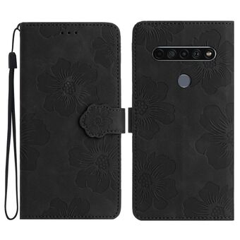 Για LG K61 λουλούδι ανάγλυφο μοτίβο δερμάτινη θήκη τηλεφώνου (μαύρο)