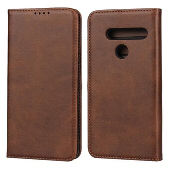 Για LG K50 Calf Texture μαγνητική οριζόντια Flip δερμάτινη θήκη με υποδοχές για κάρτες και πορτοφόλι (καφέ)
