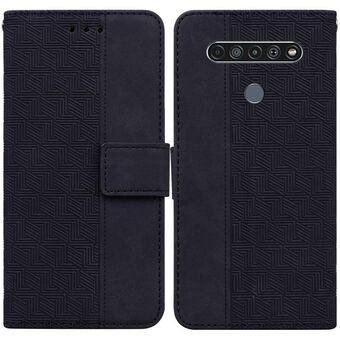 Για LG K41S / K51S γεωμετρική ανάγλυφη δερμάτινη θήκη τηλεφώνου (μαύρο)