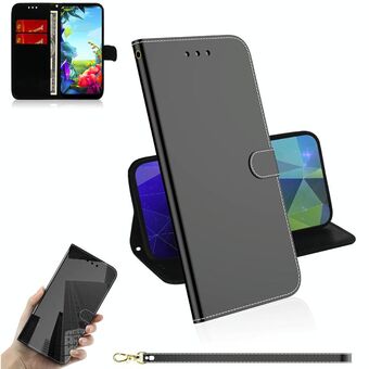 For LG K40S Mirror-like Magnetic Attraction Horizontal Flip Leather Case with Lanyard, Support Holder & Card Slot & Wallet(Black)